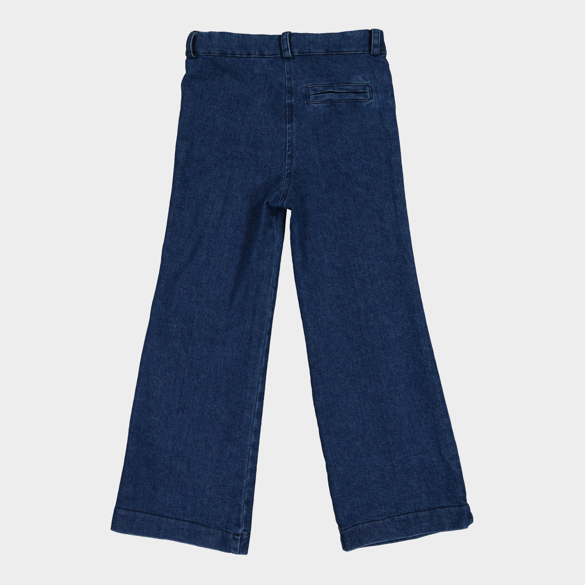 Pantalón tejano ligeramente acampanado.Cintura ajustable.Botón frontal con cremallera.Trabillas cinturón.Bolsillos vivo frontales y dos bolsillos traseros.Interior con forro de estrellas a contraste.
