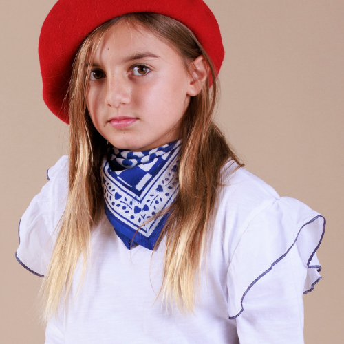 Camiseta blanca combinada con voile.Cuello redondo cerrado con botón en espalda.Volantes en hombros en voile con festón a contraste.Mangas largas.Corte recto.
